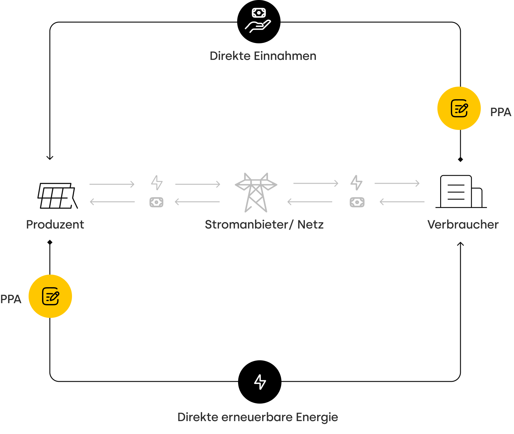 PPAs oder „Power Purchase Agreements“ sind Verträge zwischen einem Erzeuger erneuerbarer Energien und einem Verbraucher (Abnehmer). In PPA-Verträgen werden die Bedingungen für den Verkauf von Strom aus erneuerbaren Energien von einem Erzeuger an einen Verbraucher über einen langen Zeitraum festgelegt. Sie können eine Laufzeit von 3 bis über 25 Jahre haben. Obwohl es sich technisch gesehen um Stromabnahmeverträge für jede Art von Energie handeln kann, bezieht sich ein "Power Purchase Agreement“ in der Regel auf den Kauf von erneuerbarer Energie.